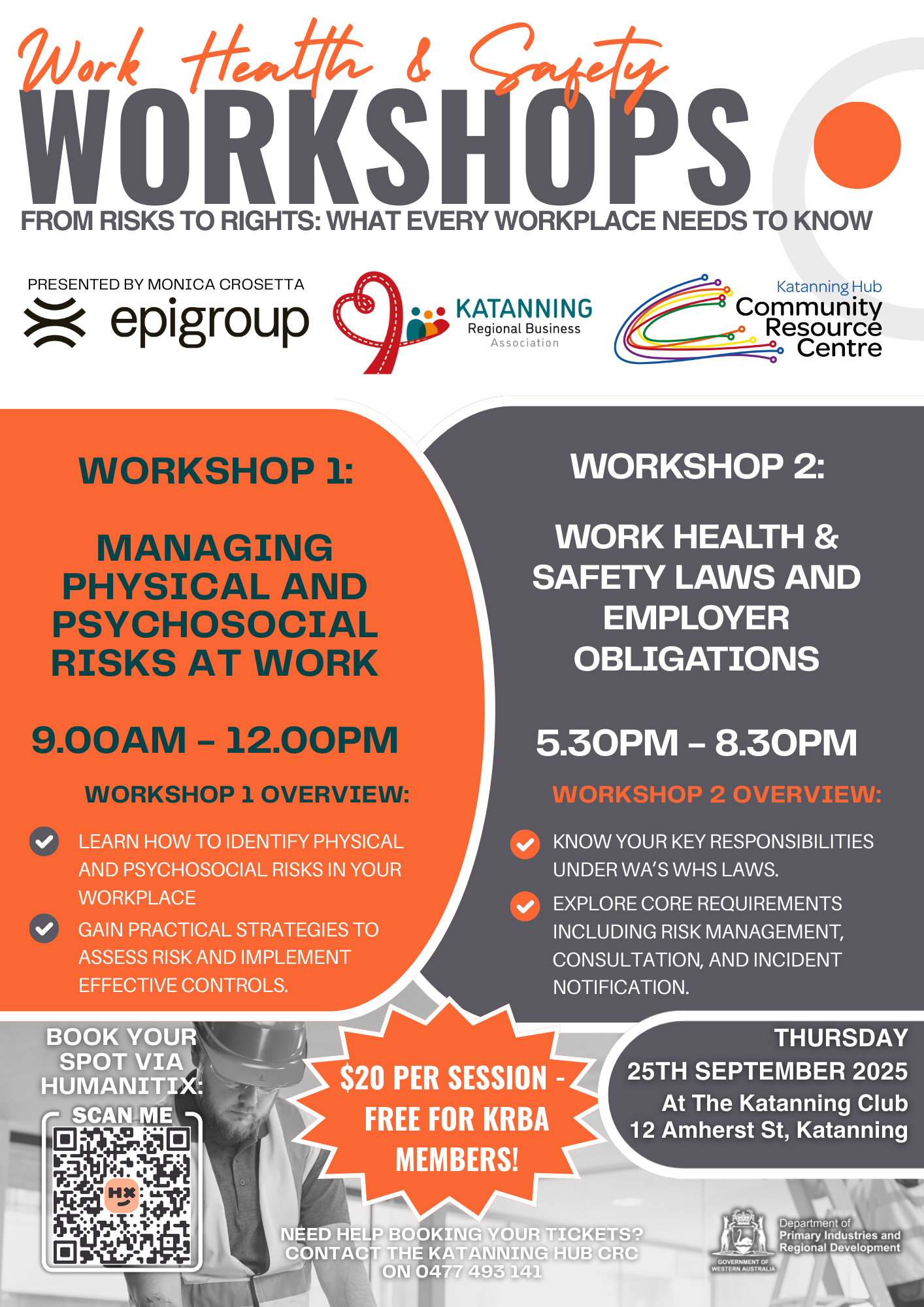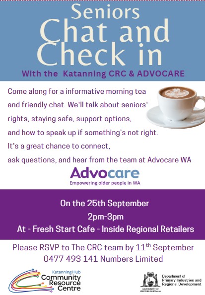 RSVP to the Katanning Hub CRC 0477 493 141 by 11th September 2025