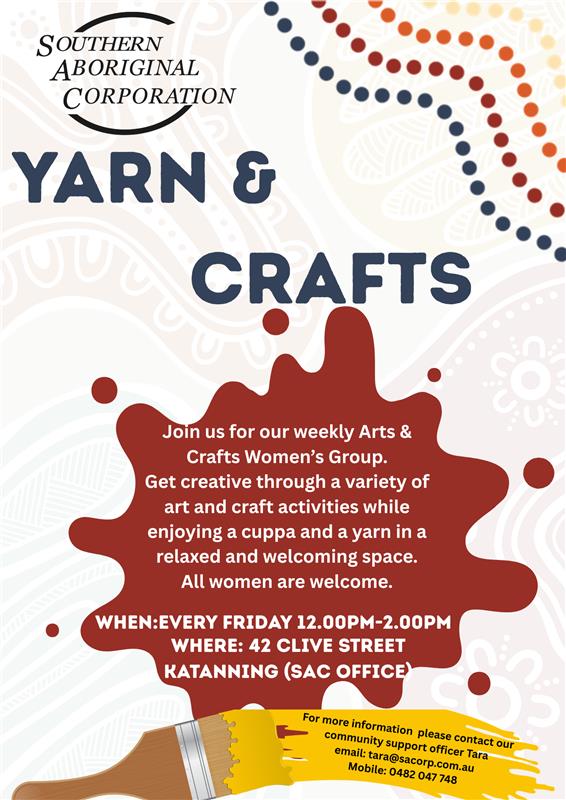 Weekly yarn and craft group for woman! Come get creative with a variety of art…